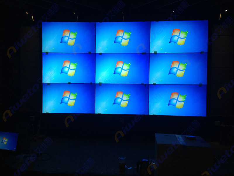 通過對客戶使用需求和部署環境的認真研究和考察,Aiweto(艾維圖)科技工程師給出了多套相關解決方案,最終選用了由9臺(Aiweto) 46寸3.5mm液晶拼接單元組成3×3、大屏幕液晶拼接墻。46寸3.5mm液晶拼接單元采用先進的集成處理芯片,性能穩定,運動圖像補償等獨有的先進技術,有效的保證了輸出圖像的效果,支持7×24小時開機,拼接邊縫小,適合大屏液晶拼接項目應用。